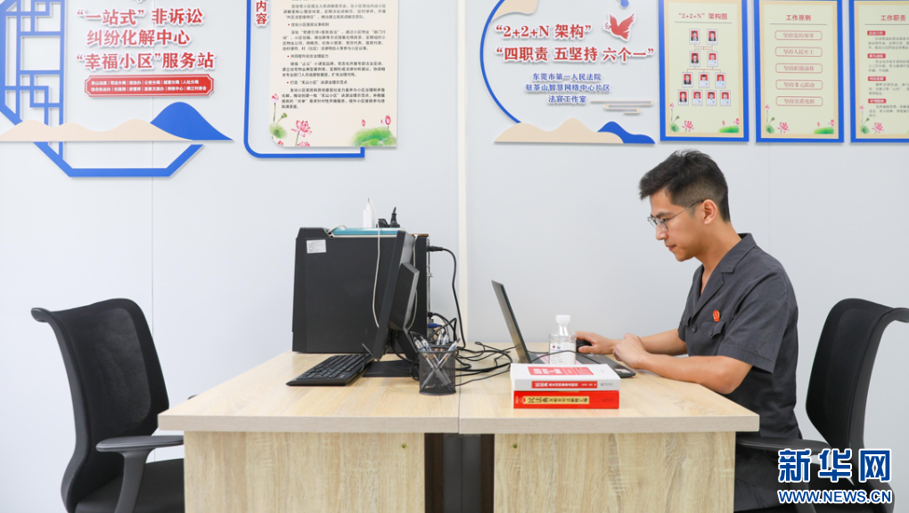 法官进驻幸福小区治理中心开展矛盾纠纷化解工作。新华网发(东莞市委政法委供图)