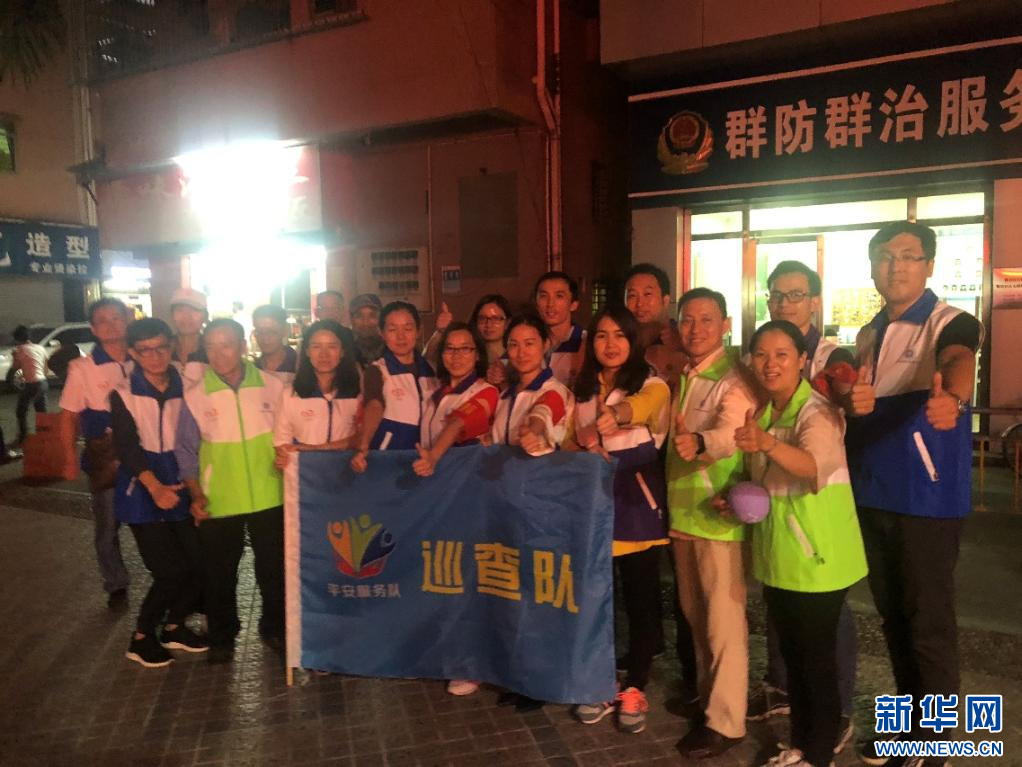 “平安使者”志愿者开展“守望夜巡”。新华网发(东莞市委政法委供图)